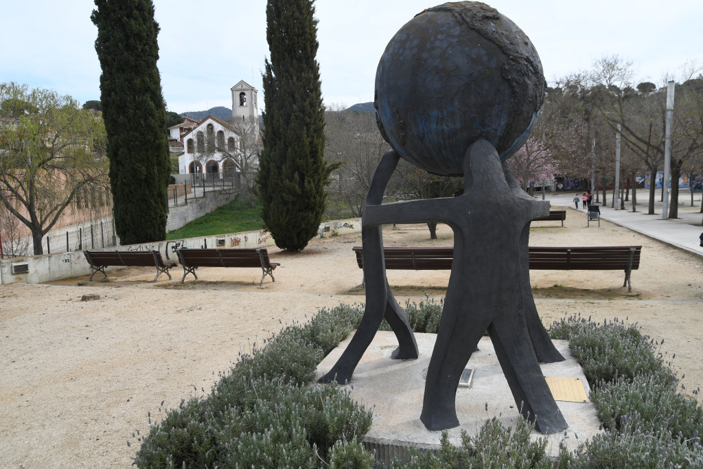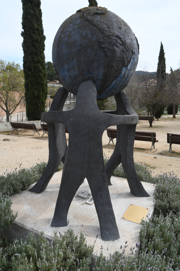 Escultura formada per tres figures antropomorfes estilitzades, en rotllana, agafades per les mans i que, amb el cap, aguanten el globus terraqüi. Les figures es recolzen sobre una base de formigó (1,5 x 1,5 x 0,7 m). Tot envoltat d'un parterre delimitat per un mur perimetral de formigó. És el fruit d'un taller de l'autor (Silvio Pérez) amb quatre alumnes de l'Institut Alba del Vallès i recull els valors del Fòrum de les Cultures de Barcelona, celebrat l'any 2004 i representa el desenvolupament sostenible, la diversitat cultural i les condicions de la pau.
