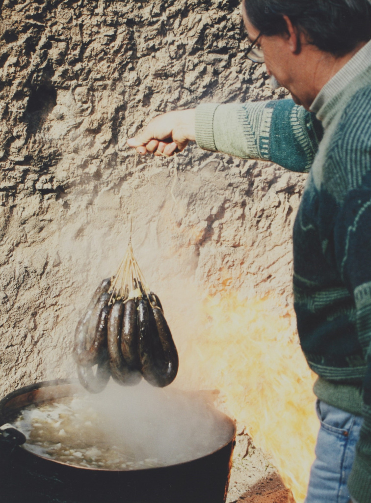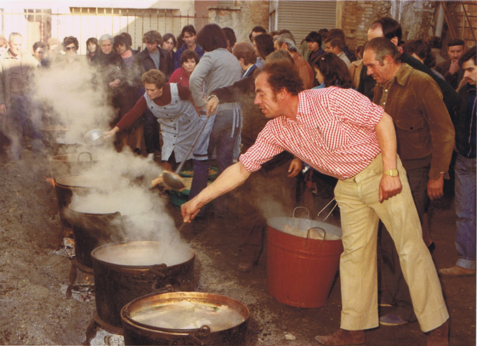 Els aliments que es cuinaran al caldo són preparats a l'edifici de les monges. Al llarg dels anys, la recepta de l'escudella ha mantingut la seva essència amb mínimes modificacions, destacant la contribució del fumat del foc de llenya que n'enriqueix el sabor.