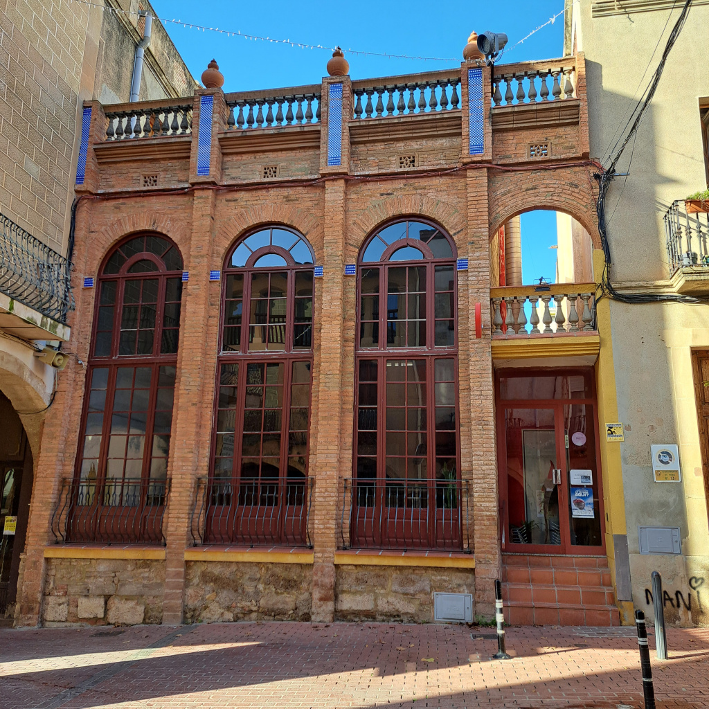 El segon volum segueix la línia de la façana del portal principal i s'identifica com el cafè. El frontis presenta quatre grans obertures d'arc de mig punt, de les quals tres són finestrals amb tancament de fusta i vidre i el quart integra l'entrada. Entre els arcs hi ha pilastres que enllacen amb el capcer, on hi ha una barana de balustrada amb gerros ceràmics. També hi ha un tram de balustrada sobre l'entrada. El tractament exterior del mur és d'obra vista, amb les impostes dels arcs i la part superior dels pilars decorats amb ceràmica blava i blanca.