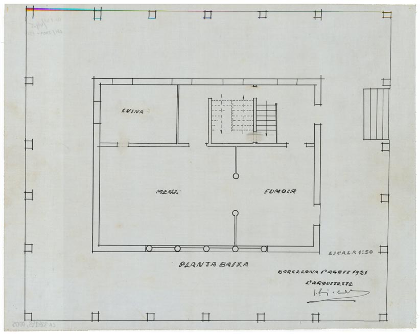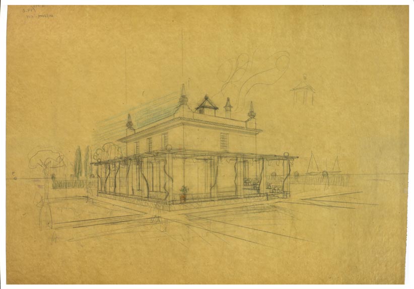 Casa prop de l'estació, a Sant Vicenç de Montalt [ANC1-737-N-44]. Any 1921.: 6 dibuixos i plànols. Llapis i tintes sobre paper.