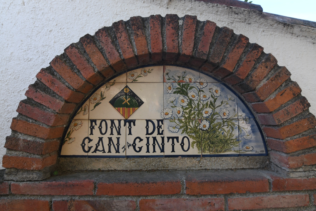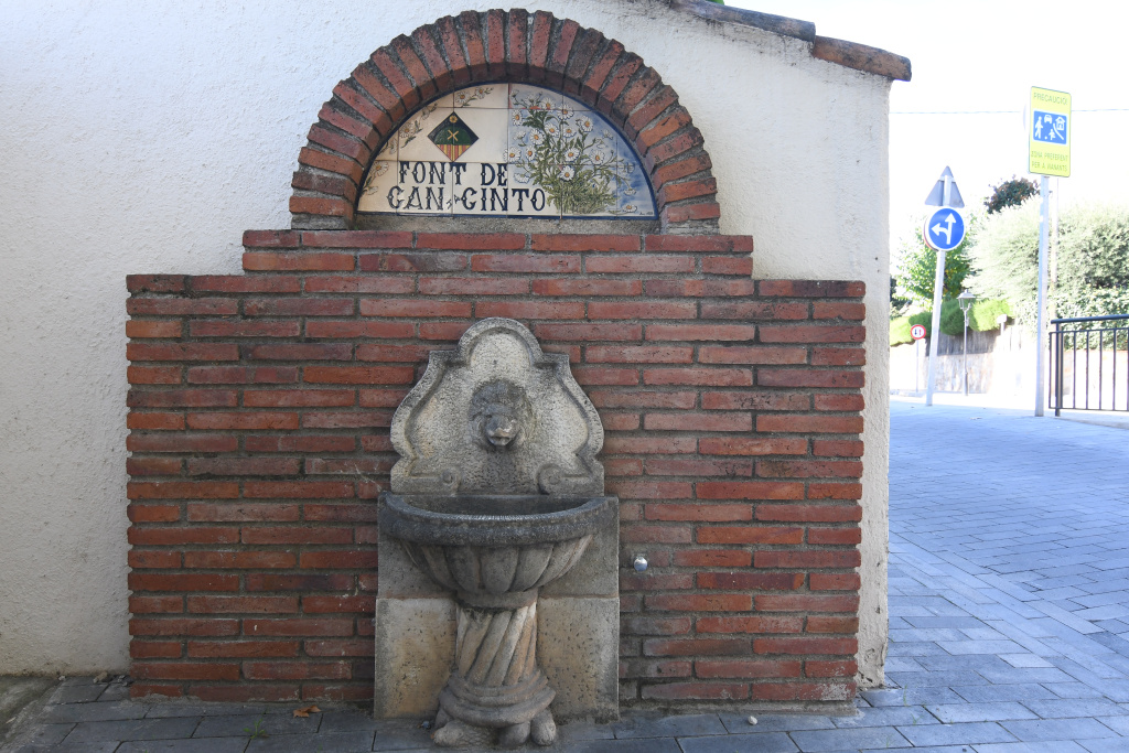 La font de can Cinto està ubicada al costat meridional de la carretera de Cornellà a Fogars, darrera can Cinto, d'on rep el nom. Forma part d'un conjunt de fonts urbanes construïdes a la mateixa època. Un mateix disseny amb unes rajoles personalitzades en el frontó serveix com a punt de partida per a totes elles. Consisteix en un frontis fet de maons amb un acabament de mig punt amb els maons posats a llibret. En el timpà hi ha un plafó ceràmic on hi ha l'escut municipal, en un costat, el nom de la font a sota, i una decoració floral a base de margarides blanques.Tot resseguint els contorns amb una franja floral, també de margarides.