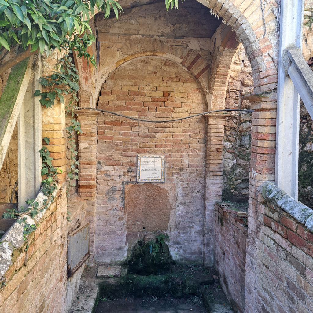 Font situada dins del pati de la masia de Can Parellada. És una estructura semisoterrada a la qual s'accedeix descendint unes escales fetes amb rajol. La font està construïda en un mur de maó, on hi ha una llosa amb una inscripció dins una orla decorativa, que es troba força erosionada. S'entreveu "A 16 de AGOSTO 1797" al final del text. L'aigua brolla d'una aixeta metàl·lica que està fixada en una pedra, i cau en una pica rectangular de pedra. Està coberta amb una teulada de bigues i llates de fusta a un vessant, que descansa sobre una estructura porticada en arcs de mig punt ceràmic. La part interna dels arcs i el fals sostre tenen restes de pintures murals.