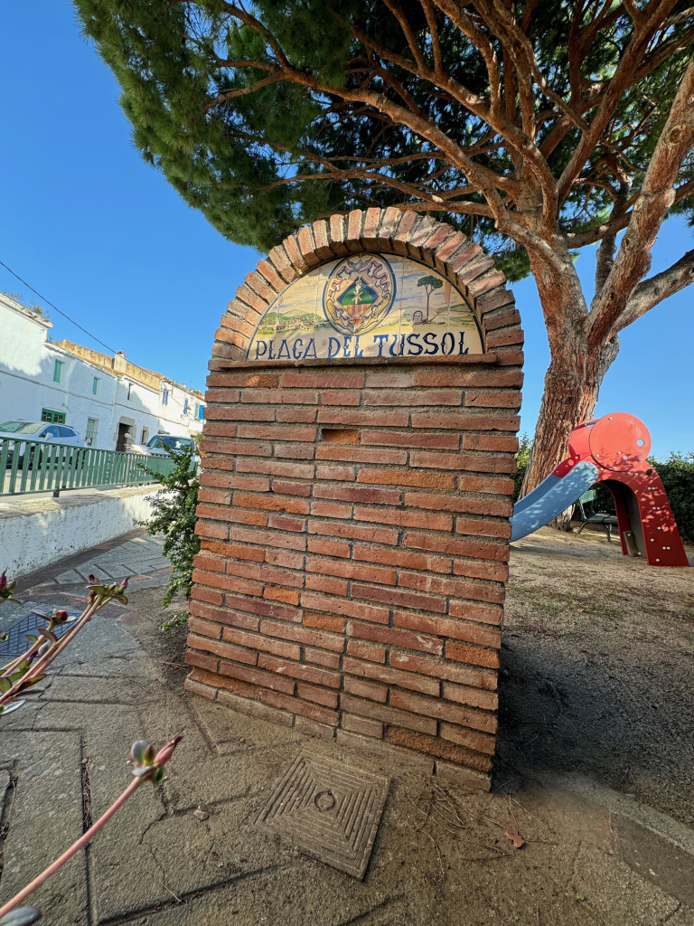 A la part posterior hi ha un altre plafó ceràmic on posa el nom de la plaça: "Plaça del Tussol".