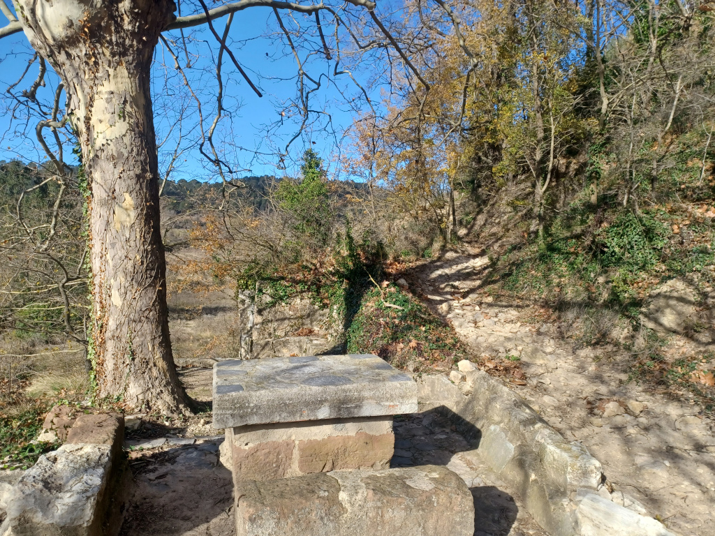 Aquest espai s’hi accedeix per unes escales de pedra. Al costat de la font, a una terrassa superior, l’any 2003 un grup de veïns del poble van arranjar l’espai i van col·locar-hi una taula i uns bancs de pedra.