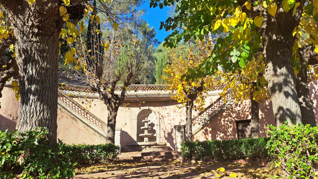 Les fonts ornamentals, estan situades al jardí de la propietat, i disposades en dos nivells dins del conjunt constructiu. Es troben limitades a l'exterior per una tanca amb reixa de brèndoles decoratives de ferro.