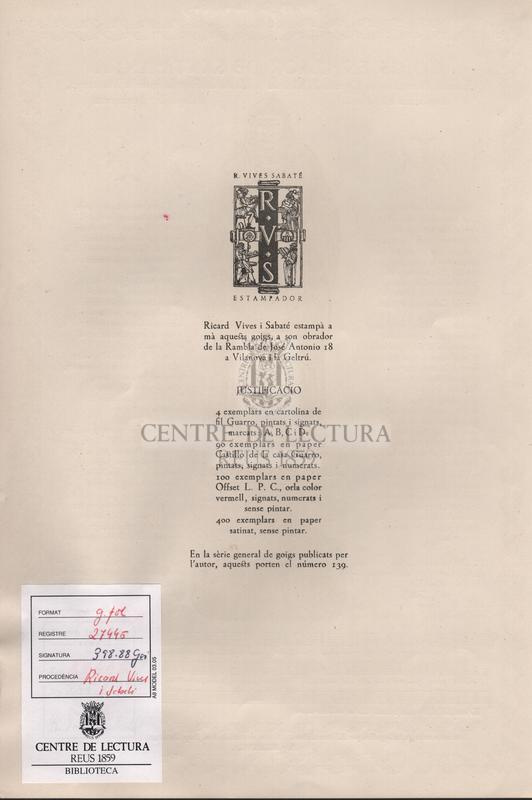 El goig localitzat és l’exemplar 139 de 400 estampat per Ricard Vives Sabaté a Vilanova i la Geltrú.