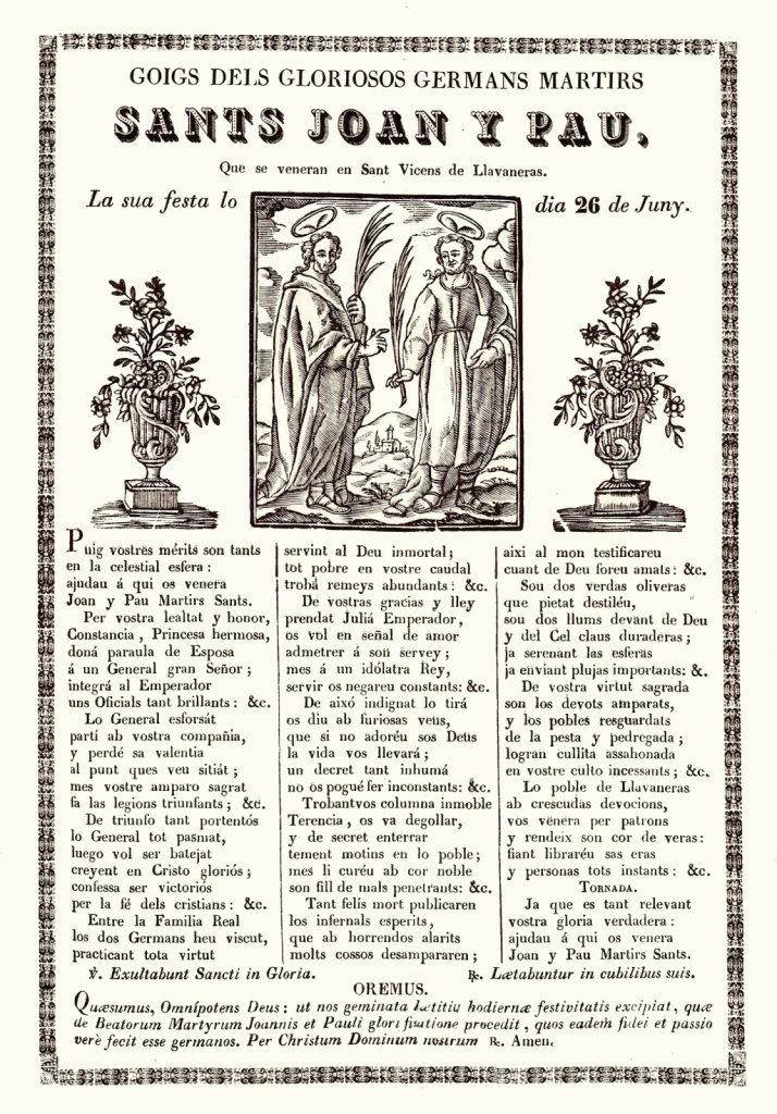 Goigs dels gloriosos germans martirs Sants Joan i Pau