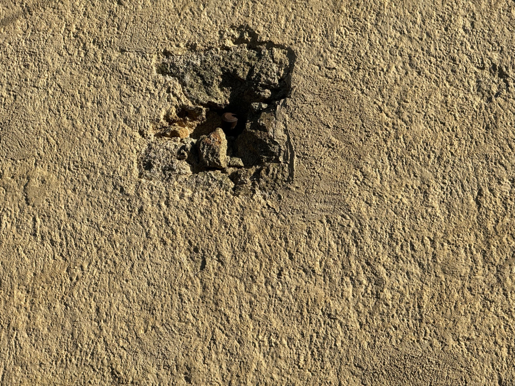 Impacte d'obús a la façana de l'església