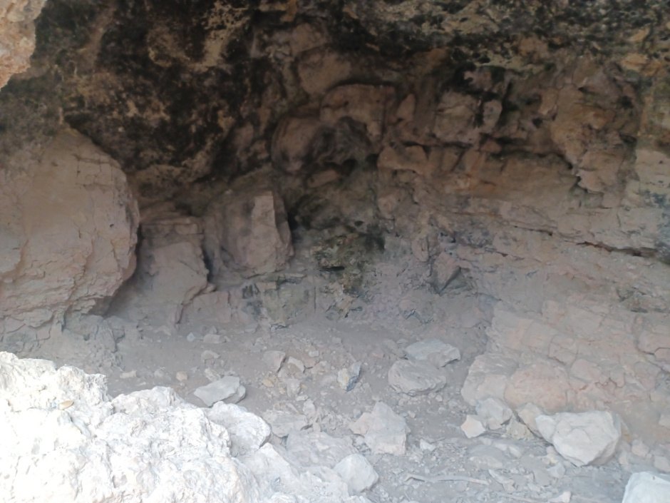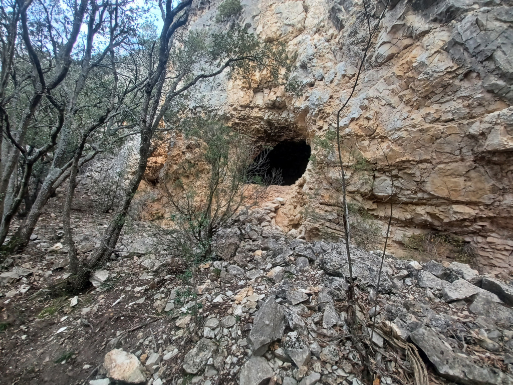Cova situada al peu d’una tartera molt a prop del camí de l’obaga dels carbons.