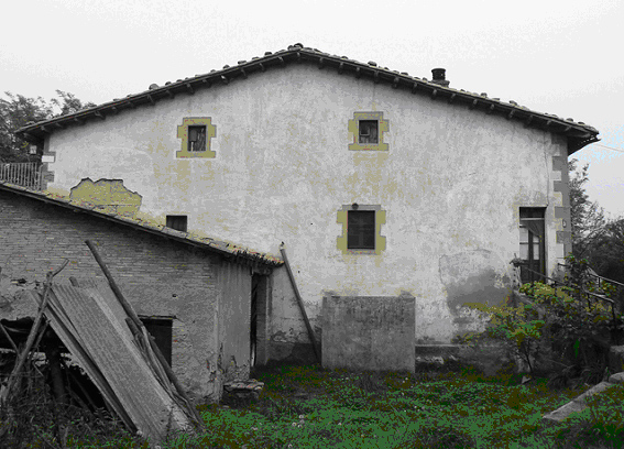 La façana nord està dominada per un cos i una estructura adossats modernament, formant una terrassa a nivell de primer pis.