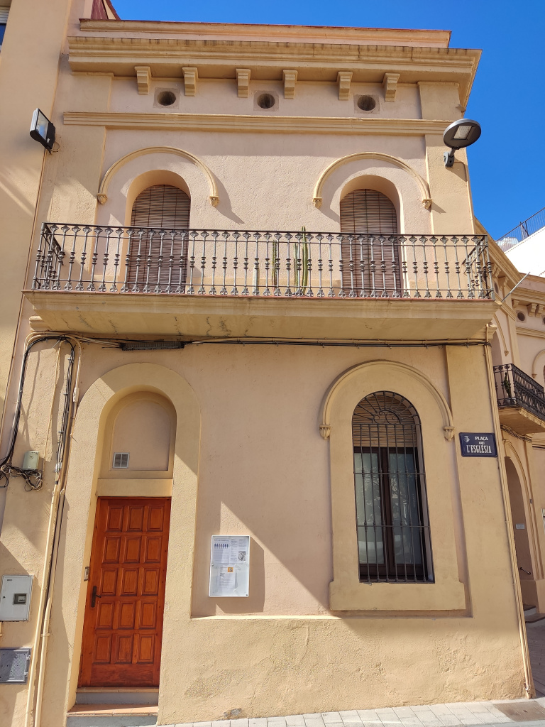 Edifici historicista adaptat a una de les cantonades de la plaça de l'església. Sense coberta perquè disposa de terrat, disposa d'una distribució de planta baixa i pis. La seva façana es caracteritza per les portes i finestres amb arc de mig punt i un fi guardapols que les emmarca, així com reixes i baranes de forja. La planta, orientada a la plaça és irregular i es genera un petit espai propi a la vorera per l'enfonsament la línia del carrer cap a dins la parcel·la a la zona de la porta principal d'entrada.
