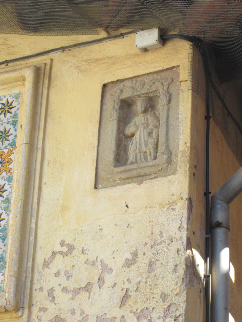 Majòlica i figura en baix relleu situats a la façana d'una casa. La majòlica és rectangular i està feta amb ceràmica vidriada. Hi ha representat Sant Antoni de Pàdua a la part central, portant en una mà al Nen Jesús i a l'altra una flor, amb una església al fons. L'escena està envoltada amb rajoles blanques amb flors verdes i grogues;a cada costat de la imatge central de diferent tonalitat tot formant una creu. El marc és de pedra motllurada. S'hi conserva el suport metàl·lic on s'hi posava el llum. Al costat hi ha una figura de pedra tallada en relleu, on s'hi representa Sant Quirze i Santa Julita, dins una orla amb un cap d'àngel a la part superior i motius vegetals als costats.