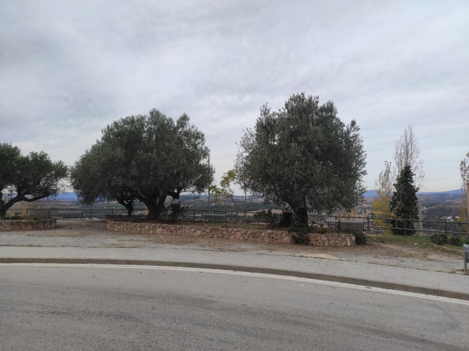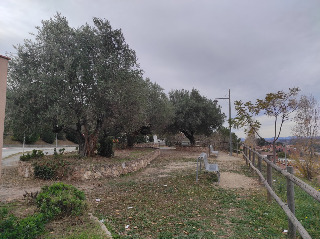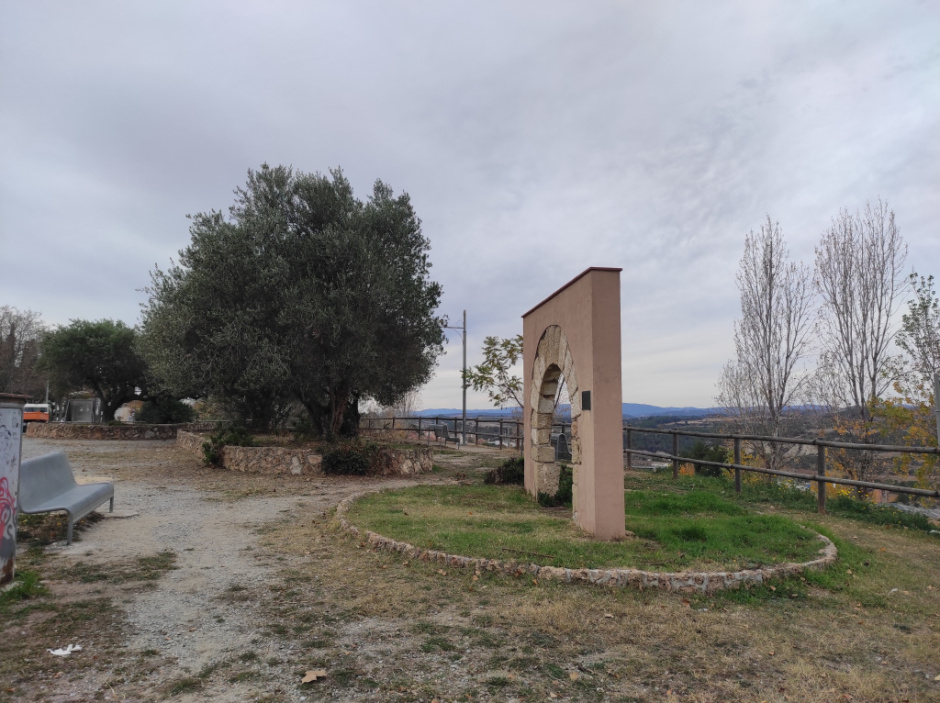 Es tracta d'un mirador adaptat en un espai amb bancs, orientat a la plana del Penedès i emmarcat per les muntanyes de Montserrat.