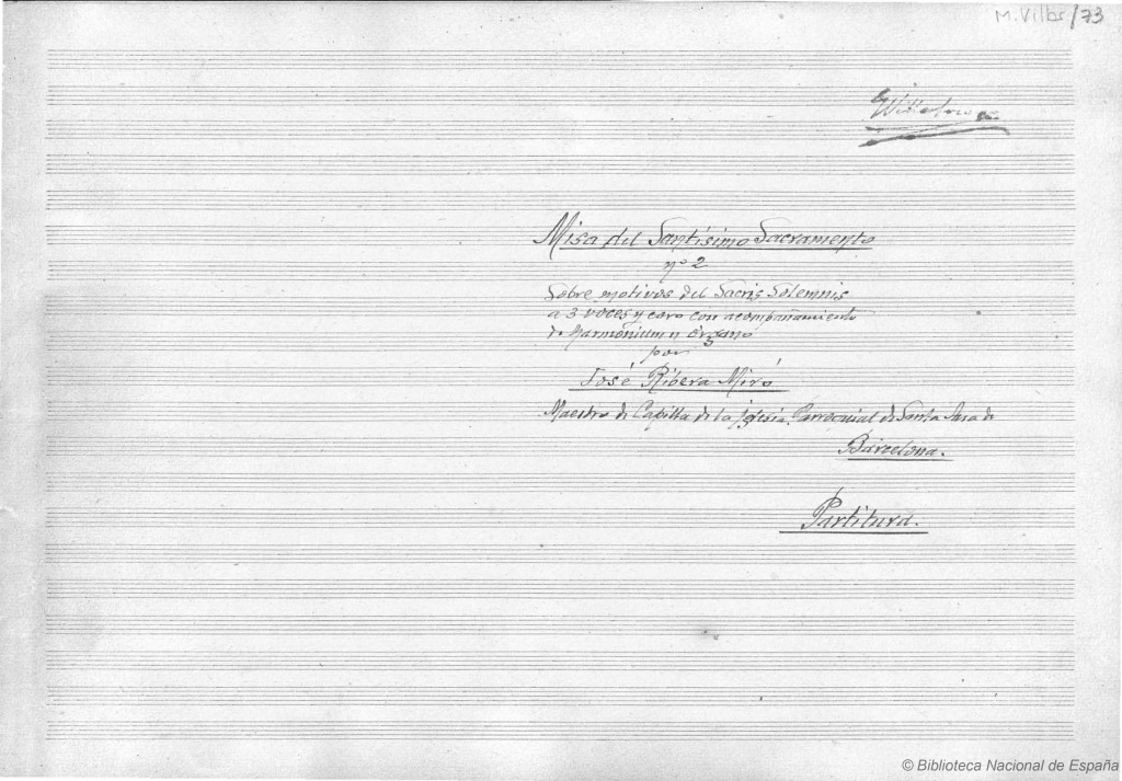 "Misa del Smo. Sacramento" cantada, en llatí, dita de Ribera, composta per José Ribera i Miró.