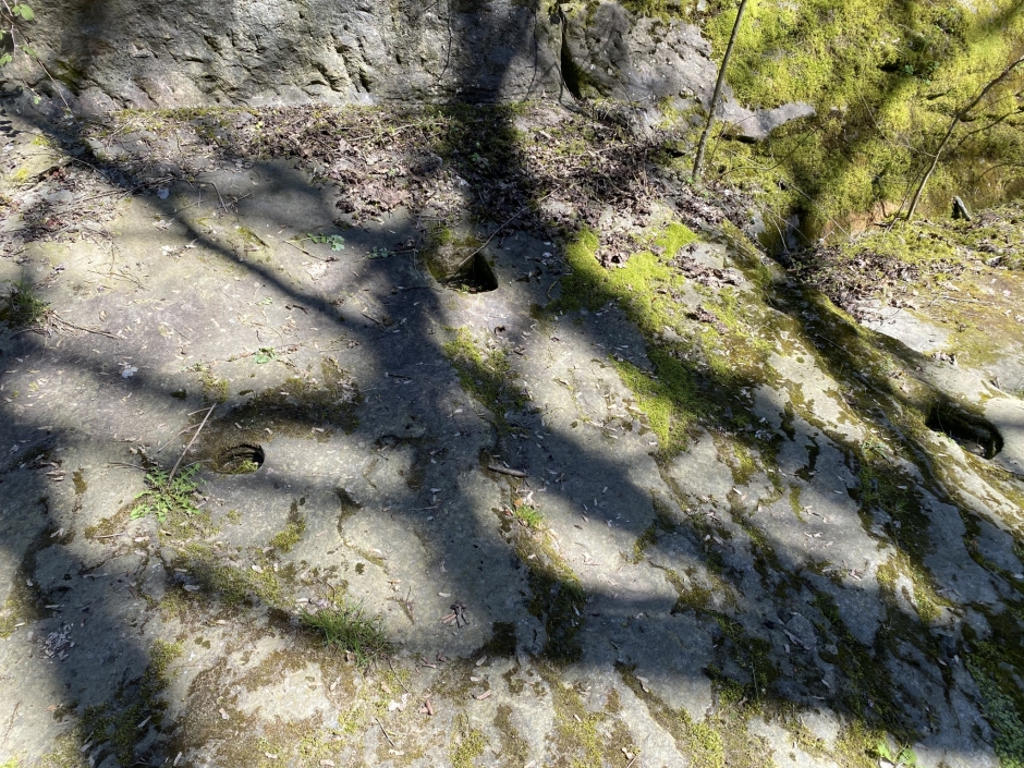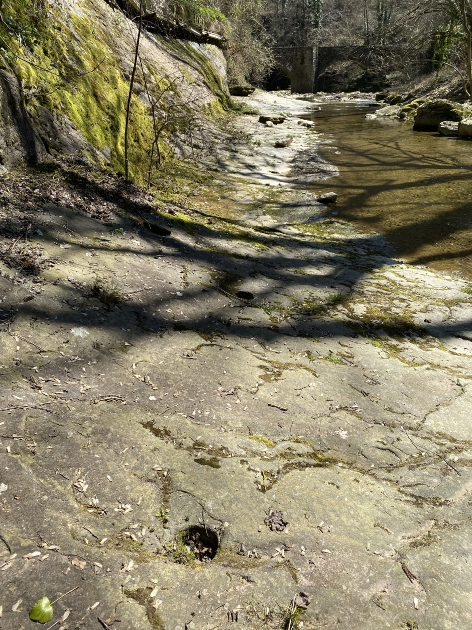 Restes de dos antics molins situades a la riba de llevant de la riera de Rupit, des del gorg Negre i fins al pont de can Badaire. Es tracta de diversos encaixos excavats a la roca natural del terreny i de la riera, relacionats amb les construccions que acompanyaven aquests molins. A la llera de llevant del gorg es documenten cinc encaixos rectangulars, petits i desgastats. Damunt seu s’inicia una línia de 24 encaixos quadrats d’uns 15 cm de costat, que marxa en direcció a migdia i que estan situats al marge de llevant de la riera, a mitja alçada. Uns metres més avall, i situats a la llera de llevant de la riera, hi ha una segona línia de forats quadrats i circulars de mida més petita, tot i que cal destacar també la presència de dos encaixos quadrats més grans que els anteriors (22 cm per 25 cm). És probable que aquestes restes corresponguin a uns possibles canals o recs disposats entre el gorg Negre i el pont de can Badaire.