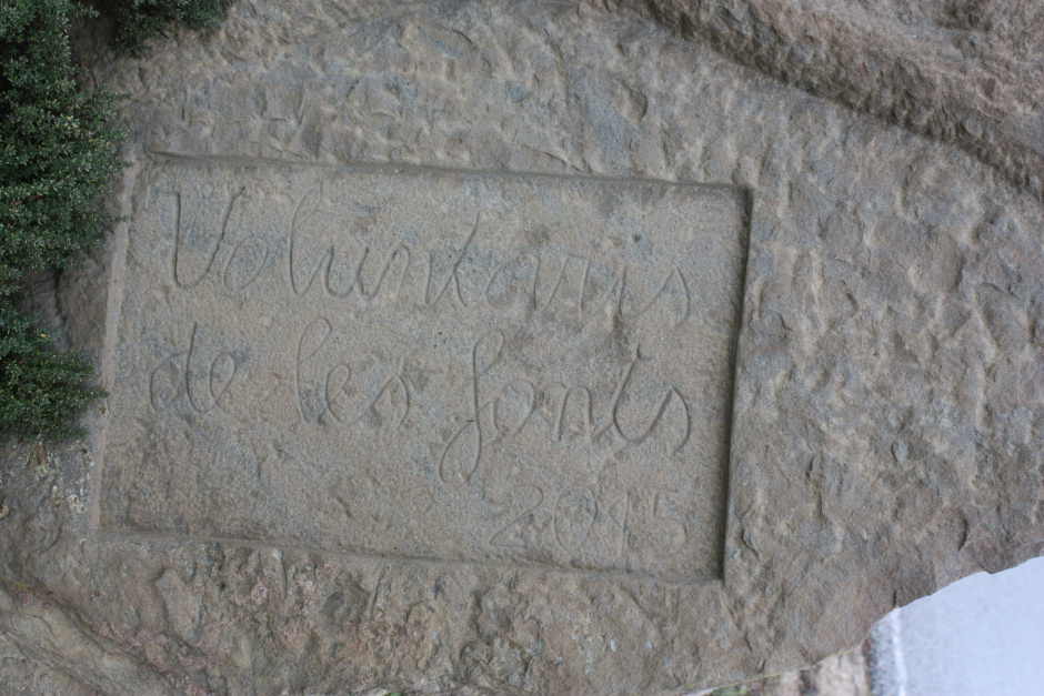 La pedra per donar la benvinguda es troba situada a l'entrada sud del municipi, a la zona dels Pinars del Badó. La pedra la va inaugurar l'alcaldessa, Anna Guixà, durant la festa dels patrons Sant Quirze i Santa Julita. Els voluntaris que van participar en la creació de l'escultura van assistir a la missa solemne i van culminar l'acte amb una arrossada.