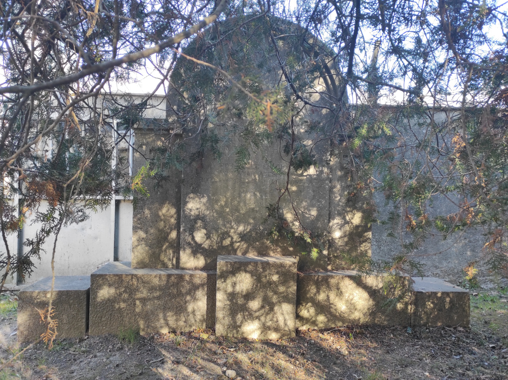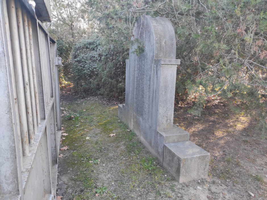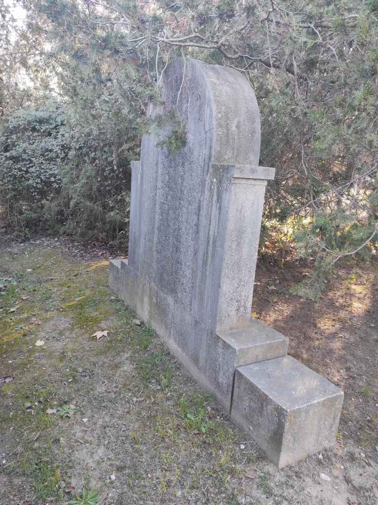 El monument està ubicat a escassos 3 m del mur del jardí. El costat del mur és llis sense inscripcions.