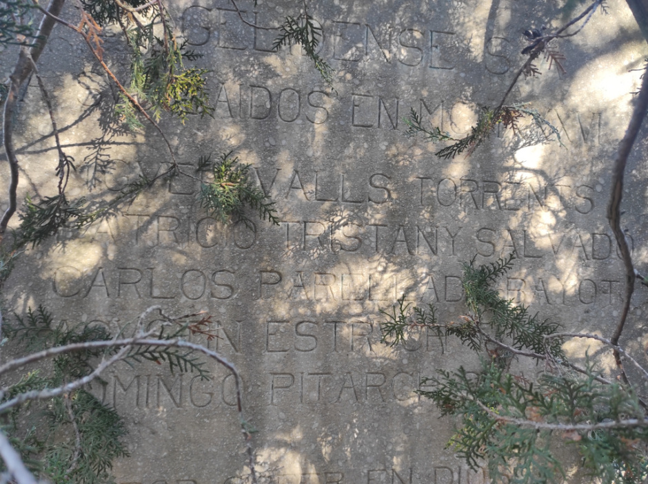 El costat orientat a la fàbrica presenta un text en record als cinc veïns del poble i treballadors de la fàbrica "Gelidenses fusilados en MCMXXXVI" durant la Guerra Civil que van morir per Déu, per Espanya, i també (és la particularitat d'aquest monument) "(...) por su fidelidad a la empresa".
