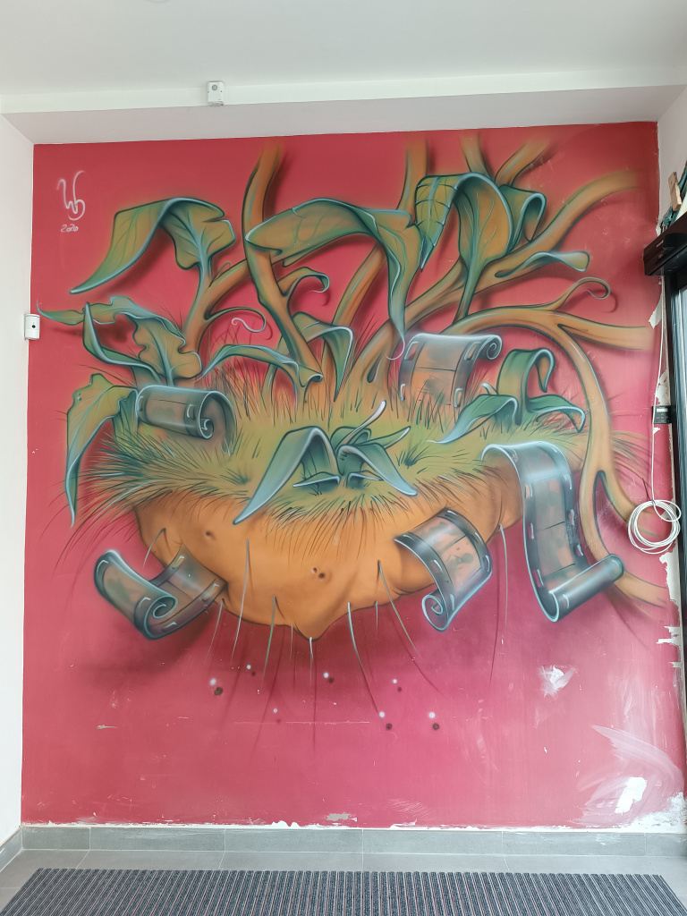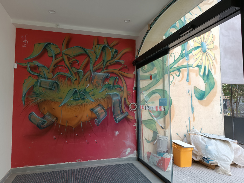 Mural pintat en una paret del Casal d’Avis Serra de Galliners, a la façana posterior que dona al pati. Una part és exterior mentre que una altra s’ubica a l’interior de l’edifici. És obra del grafiter sabadellenc Werens.