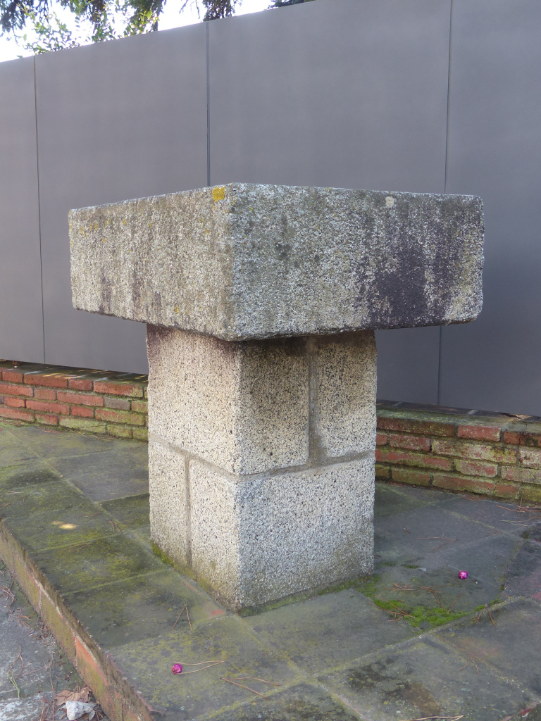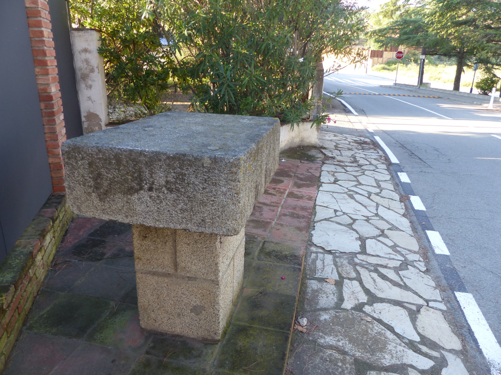 Pedró en forma d'altar format per dos blocs de pedra granítica. No conserva la creu que hauria de tenir al damunt. Des d'aquí es beneïa el terme el dia de la festa de la Santa Creu, el 3 de maig. Actualment no es troba en el seu lloc original. Estava ubicat uns 25 metres més a migdia en una petita elevació des d'on es visualitzava gran part del terme. Quan es va vendre la finca, el propietari va cedir al municipi l'espai on es troba.