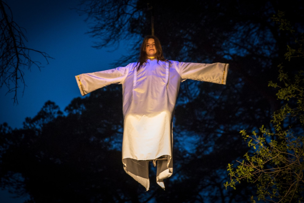 Els anys 70 del segle passat es representà a diferents espais: camp de les pomeres d'en Baliarda o turó de la Ribalta. Fins que l'any 1984 es decideix ubicar-lo en l'espai actual.