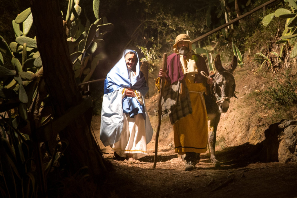Es representa des de l'any 1967 i és el més antic de la comarca del Vallès. L'iniciador fou mossèn Daniel Monserdà. La primera edició es va fer davant l'església, per rebre els oients a la Missa del Gall. Un àngel penjat d'una corda a la plaça de l'església anunciava als pastors el naixement de Jesús. Es tracta el tema de l'Anunciata. Els anys següents s'ampliaren el número de quadres, però es continuava fent davant l'església i es representava únicament la vigília de Nadal.