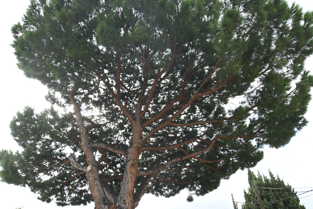 Ha tingut alguna poda i no s’observa cap malaltia aparent. El Pinus pinea, és el més resistent dels resinosos als incendis forestals per la seva escorça gruixuda i per la capçada, que normalment queda allunyada del terra, la qual cosa permet que el foc pugui en determinades circumstàncies, passar per sota.