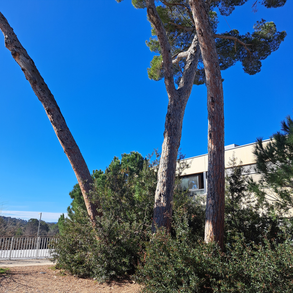 Els pins de l'Hort Nou estan situats al pati de l'Institut Escola Piera.
