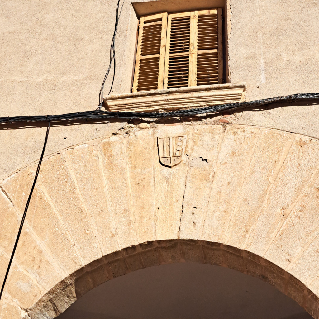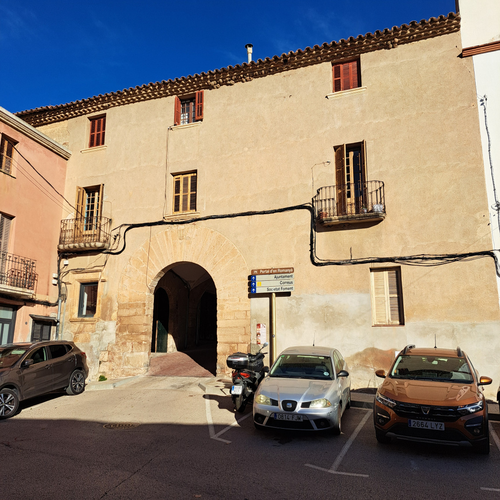 El nucli del Mercadal de Piera estava envoltat al segle XIV per una muralla que tenia dos accessos, el sobirà o superior i el jussà o inferior. El portal jussà, també conegut com a portal d'en Golart, per la família que residia a la casa de sobre. Amb la crisi baixmedieval, el monestir de Pedralbes va adquirir el senyoriu de la vila, moment en el qual es devia afegir el seu escut al portal. El 1619 la casa va passar a mans de la família Romanyà, qui va donar la denominació actual al portal.