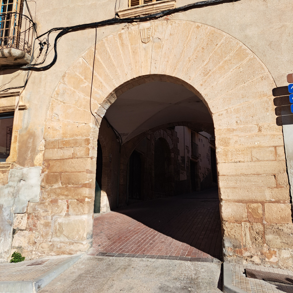 El portal exterior és d'arc de mig punt adovellat, amb les dovelles estretes. La de la clau té l'escut heràldic dels Parellada en relleu, que incorpora la data "1559". La casa que hi ha sobre el portal està sostinguda amb una volta de creueria i s'hi accedeix per un portal d'arc de mig punt situat en un costat de la volta. La part interior del portal de la vila closa és d'arc de mig punt de pedra i assoleix més amplada que l'exterior.