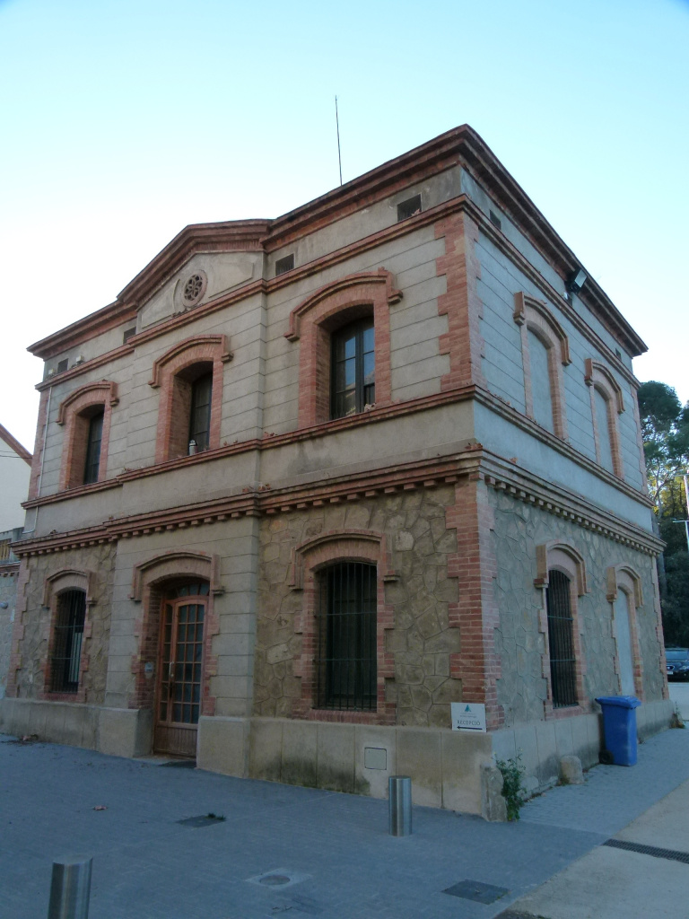 La construcció central, s'estructura en planta baixa, pis i golfes. La planta baixa presenta la porta d'accés centrada, emmarcada per brancals de maó vist i una llinda d'arc escarser, també en maó vist. A l'altura del primer pis hi ha una finestra just a sobre de la porta, seguint l'eix de simetria, amb llinda d'arc escarser i brancals de maó vist. A banda i banda de la finestra, se situen dues obertures en forma d'òcul el·lipsoidal emmarcades en maó vist.
