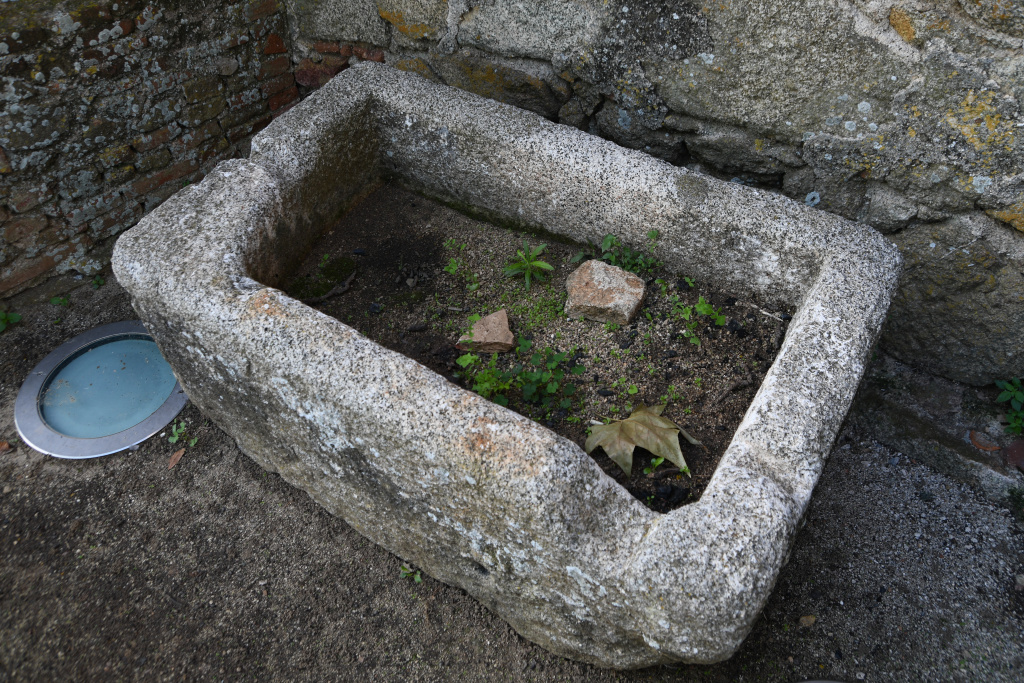 En el parterre que hi ha entre l'església i la rectoria hi trobem diversos elements etnogràfics petris procedents del celler de l'antiga rectoria. Es tracta de dues bases de premsa vertical de vi, fetes de pedra granítica, una pica possiblement d'oli i dues moles de molí d'oli o trull, totes elles d'èpoques distants.
