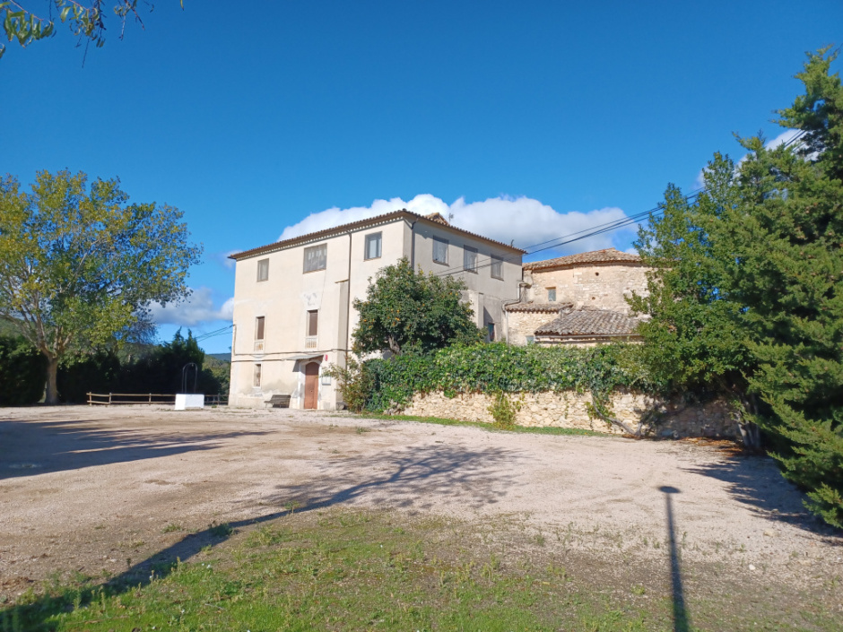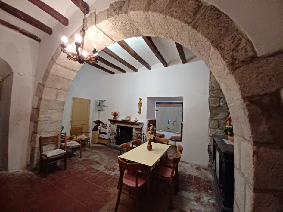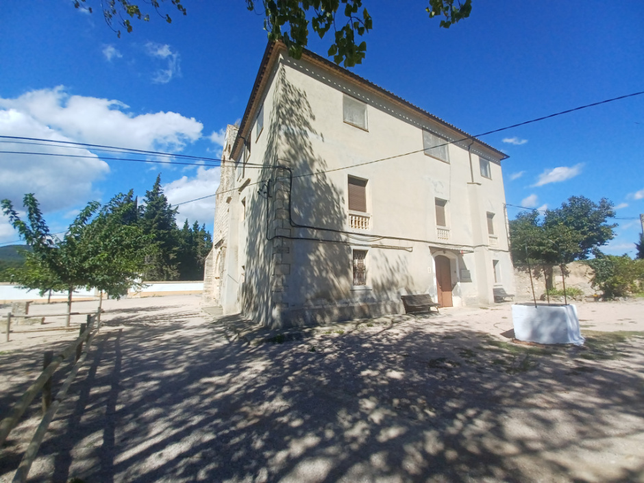 Els murs estan construïts de pedra i arrebossats amb argamassa de color gris a excepció d’una part de les cantonades, que tenen els carreus vistos. A la planta baixa es conserven diversos arcs de mig punt adovellats que divideixen les estances i la porta amb llinda de pedra que dona accés a la sagristia.