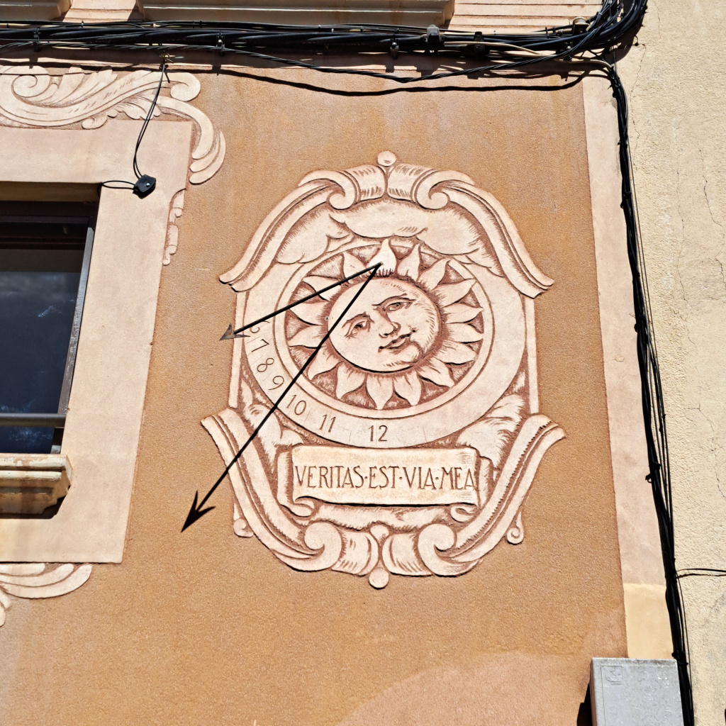 Rellotge de sol vertical que es troba situat a nivell del primer pis de la façana principal de ca la Pentinadora.