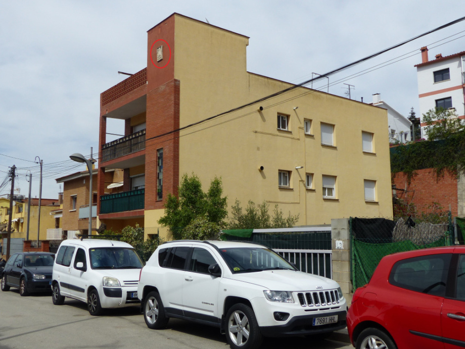 Rellotge de sol de sèrie, del tipus vertical a migdia, situat al capdamunt de la caixa de l’ascensor o de les escales del número 37 del carrer Joan XXIII, coincidint amb el terrat.