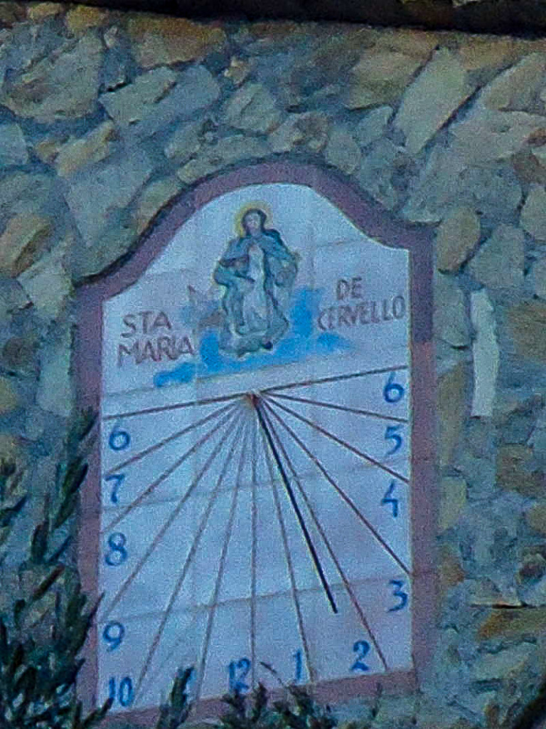 El camp on s'inscriuen les marques horàries i el gnòmon és de color blanc. En aquest camp, a la part superior, apareix la imatge i la inscripció: "STA/MARIA//DE/CERVELLÓ", a banda i banda de la imatge de la Santa, amb túnica de color blau i aureola groga, la qual emergeix del mar on s'intueix la imatge d'un vaixell.