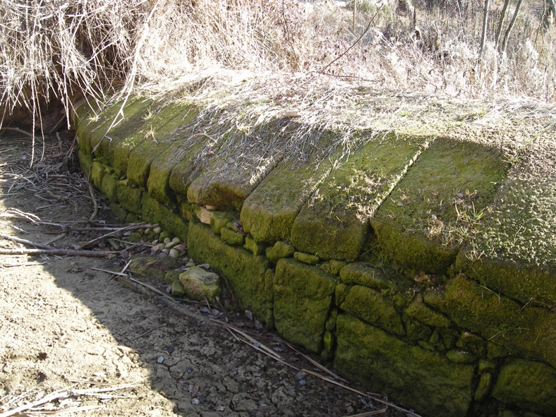 La resclosa s'ha omplert de sediments arrossegats per la riera i es troba coberta per un canyissar.