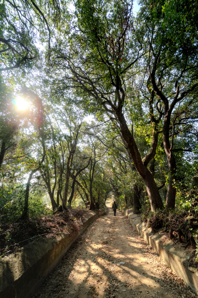 Així doncs, per una banda, ens trobem unes muntanyes normalment arrodonides i uns cims que tot just assoleixen, com a molt, els 500 metres d’altitud, a causa del procés de meteorització. I per l’altra, una massa sorrenca formada pel resultat d’aquest procés d’erosió. Sobretot per l’aigua corrent procedent de la pluja que va descomponent el granit (format per quars, feldspat i mica). Aquest material és evidentment el que trobem als llits de les rieres, i allí on el feldspat s’ha desfet, s’hi localitzen argiles.