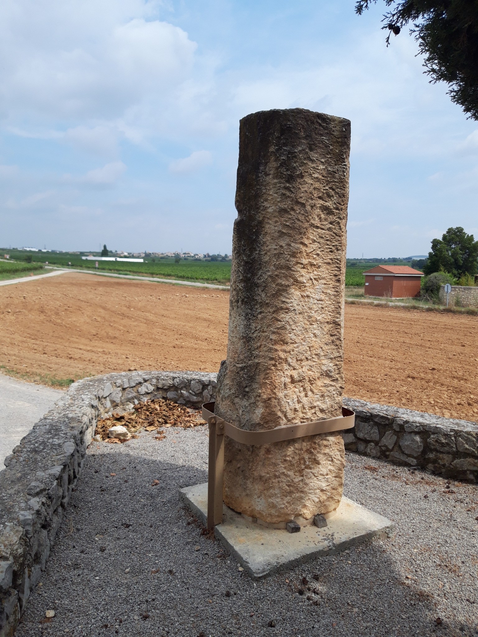 Es tracta d'un mil·liari romà, datat durant la segona meitat del segle I, reaprofitat com a sarcòfag en època medieval. La seva alçada és de 2,26 m sobre una base cúbica de 0,85 m x 0,64 m i un cos, originalment cilíndric, d'1,4 m x 0,64. és de pedra calacrenita molt abundant a la zona. La coberta sembla ser part d'un altre mil·liari reaprofitat perquè no coincideix amb el sarcòfag. A l'extrem superior es conserven dues lletres originals del text epigràfic. El cos pertanyia a un individu masculí d'uns 43-45 anys i '1,68 d'alçada. La datació encara no és concloent.
