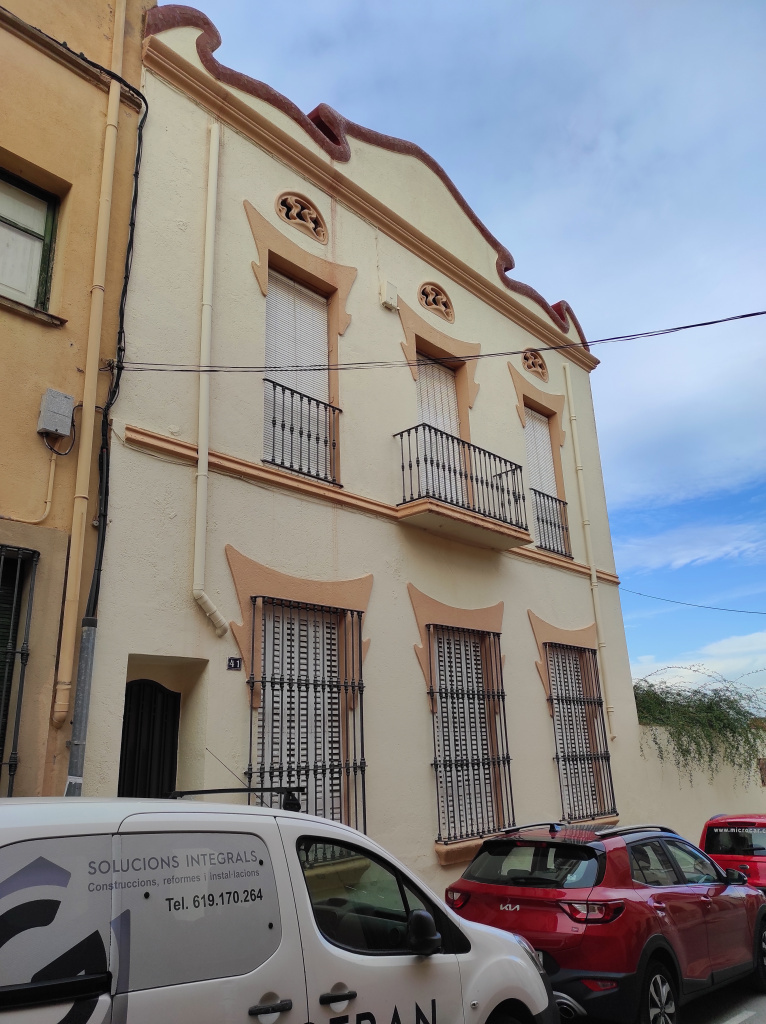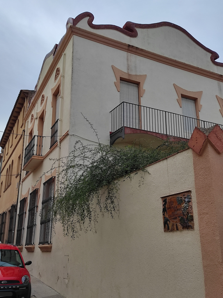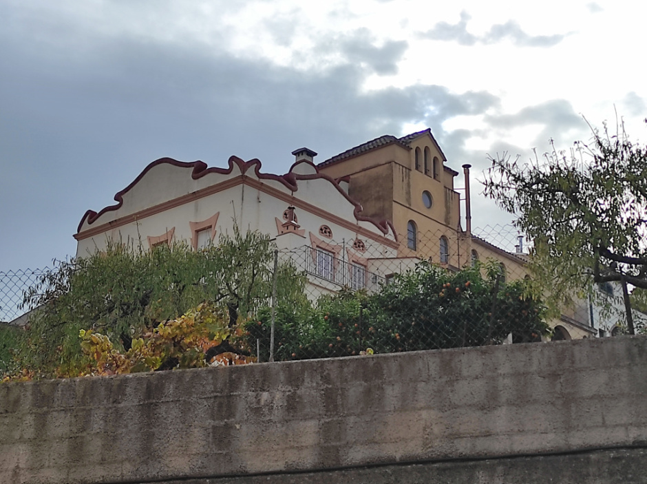 A l'exterior, la façana alineada al carrer Barceloneta mostra bé el seu l'estil modernista malgrat que manté una simetria notable. La planta baixa, que inclou una petita porta secundària d'accés, està dotada de tres grans finestrals rectangulars protegits per reixes de forja. En el primer pis, es troben tres obertures en forma de balcons, dos d'ells més amples i un central més reduït, tots amb baranes de forja. Un element destacat és el coronament de l'edifici, on es poden observar tres respiradors i una cornisa caracteritzada per línies sinuoses.
