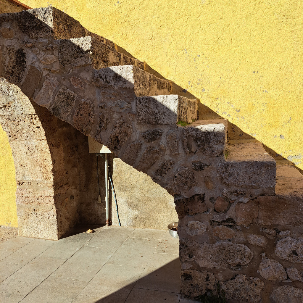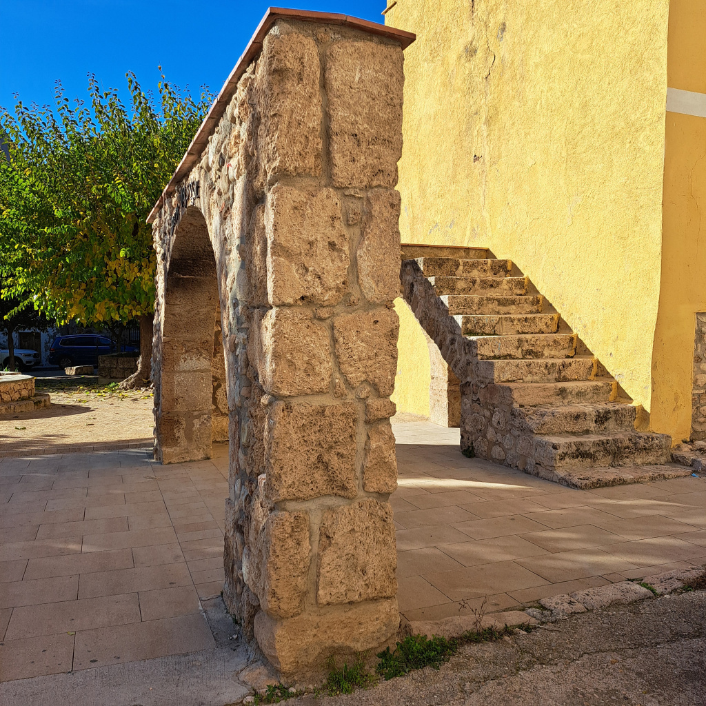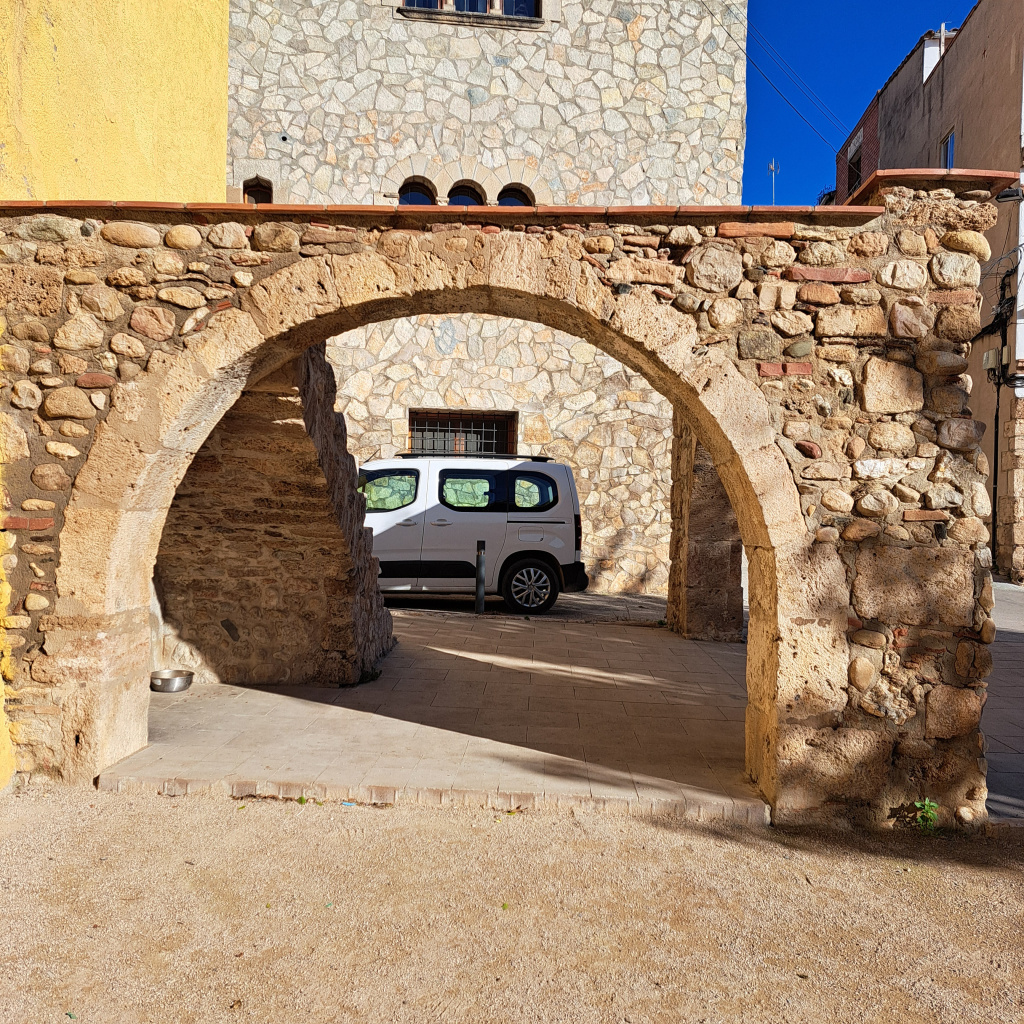 Es tracta de dos arcs de pedra oberts en un mur de pedra lligada amb morter que formaven part de l'estructura de la planta baixa de la casa. També s'hi conserva el primer tram de l'escala, feta amb graons de pedra ben escairada.